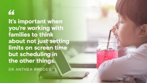 What can be done to protect children’s health in an environment where digital devices are everywhere? In this episode, host Sophie Guy talks with Dr Anthea Rhodes, a paediatrician and expert on the health impacts of digital technology from the Royal Children’s Hospital in Melbourne. The conversation covers a range of issues including the challenges families are facing in managing the impacts of technology, the effects of screen use on children’s health and development, and how to work with families to address problems with the amount of screen time for children.