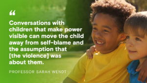- how self-blame and secrecy can operate in the lives of children and take away children’s ability to describe their experiences of trauma or violence [03:05]