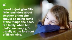 Shame speaks about the supports that can make Ellie feel less guilt or self-blame about her home life, like her grandmother who visits her from out of town. But ultimately, when Ellie’s grandmother leaves, she returns to many of the negative messages that are reinforced when her dad becomes violent. To find the right amount of shame in her life, Ellie needs more supportive adults like her grandmother to focus on her strengths, teach her how to talk about what she’s feeling, and to talk about the ‘big secrets’ like family and domestic violence so Ellie no longer has to make up her own understandings.
