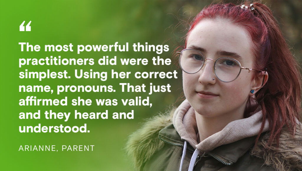 In this episode, Nicole Rollbusch talks to Arianne, a parent of six children between the ages of 8 and 22. When supporting her child through coming out and transitioning, their social and family supports were significantly challenged. Arianne took on an active role in supporting her child in her journey and her other children in theirs as the whole family experienced a transition. Arianne shares her family’s experience of supporting their daughter, navigating services, and what practitioners can do to provide gender-affirming support in their practice.